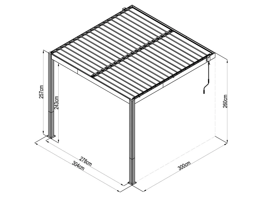 Díky manuálně ovládaným lamelám z pozinkované oceli si snadno nastavíte ideální podmínky podle aktuálního počasí. Rozsah naklopení až 110° umožňuje efektivní cirkulaci vzduchu i spolehlivou ochranu před deštěm nebo slunečním zářením. Pergola tak poskytuje příjemné prostředí během horkých letních dnů i při nepříznivém počasí.