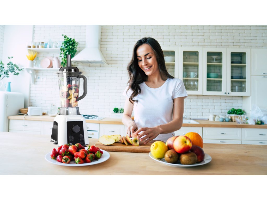 Stěny základní nádoby 2,5 l jsou vyrobeny z tritanu, speciálního odlehčeného zdravotně nezávadného (BPA free) a hlavně vysoce odolného materiálu. Tišší chod jsme pojistili odhlučněním motorové jednotky. Nádoba hladce dosedá na základnu s kovovými převody. Šestice nožů ze super kvalitního materiálu a v ideálním tvaru dokáže jemně nadrtit skutečně vše. Potřebujete dolít trochu vody během mixování? Žádný problém! Díky malému víčku se vám to povede bezpečně i za chodu. Po použití můžete nádobu buď propláchnout nebo vložit do myčky.