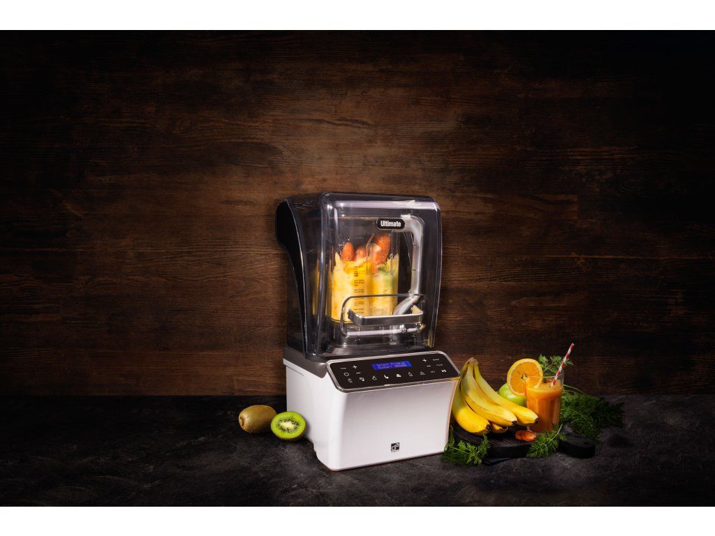 Velkou předností tohoto stolního mixéru v atraktivním moderním designu je odhlučňovací kryt pro izolaci hluku. Provoz blenderu G21 Ultimate je proto podstatně tišší, než je tomu u jiných stolních mixérů. Odhlučňovací kryt je průhledný, takže nebrání ve výhledu na obsah mixovací nádoby. Zároveň kryt slouží jako bezpečnostní pojistka – mixér se spustí pouze tehdy, když je kryt správně zavřený.