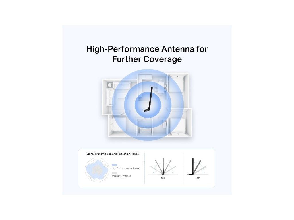 Nastavitelná vícesměrová anténa zajišťuje silnější příjem a větší dosah signálu. Díky tomu je možné využívat adaptér i ve větších místnostech nebo kancelářích.