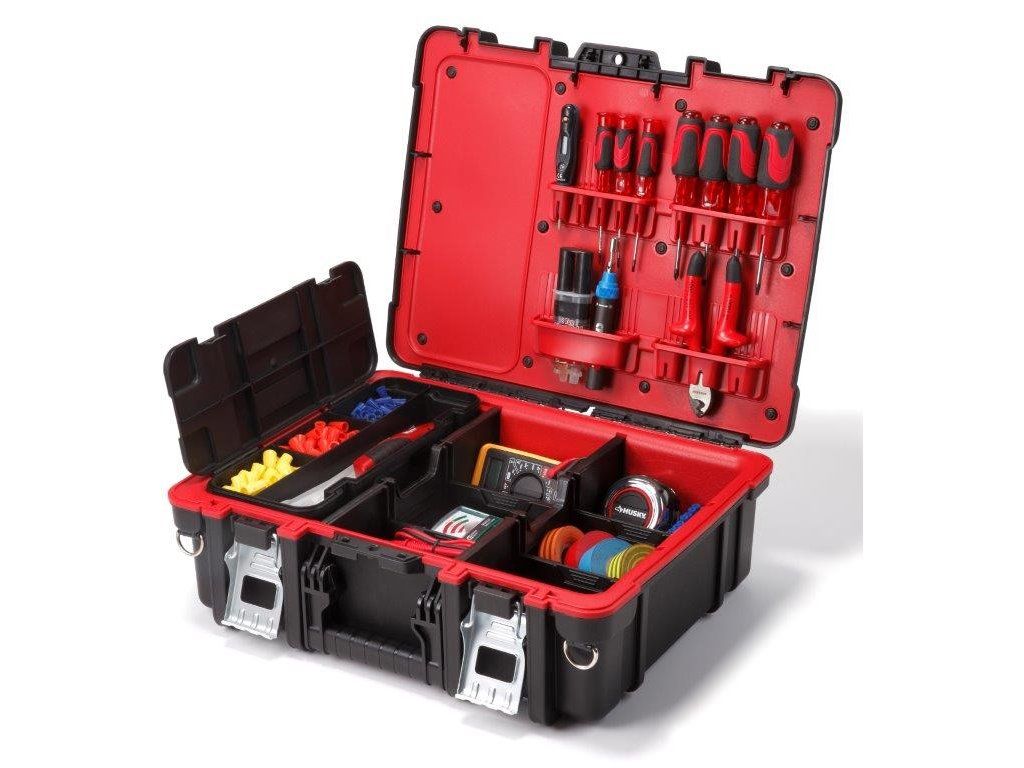 Přepážky vám umožní přizpůsobit si vnitřní prostor boxu podle typu nářadí. Kovové západky zajistí pevné uzavření kufru. V případě, že chcete mít přístup k nářadí jen vy, uzamkněte box klasickým visacím zámkem. Ten si ovšem musíte dokoupit zvlášť. Praktické madlo vám navíc zjednoduší jeho přenášení a manipulaci.