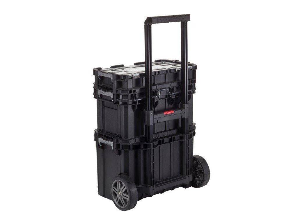 Nářadí si bezpečně uložíte do vnitřní části boxu nebo přímo do vozíku. Kromě toho jistě naplníte také organizér. Ten uchytíte na horní část boxu nebo ho použijete samostatně. Organizér je navíc vybavený vyjímatelnými přihrádkami, do kterých uskladníte drobné součástky. Díky průhlednému víku získáte dokonalý přehled o uložených předmětech.