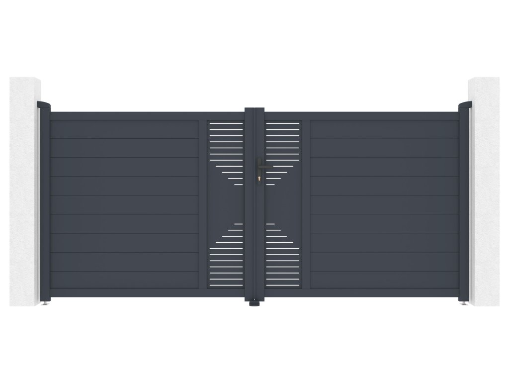 Dvoukřídlou vjezdovou bránu Marion jsme vyrobili z lehkého, přitom ale velmi spolehlivého a hlavně bezúdržbového hliníku. Je odolný vůči prasknutí i prohnutí, nezreziví a antracitový odstín, nanesený práškovým nástřikem pro větší odolnost, dodává vjezdovým vratům atraktivitu a stálobarevnost. Zesílený profil hliníkové brány Marion vám navíc v budoucnu umožní montáž elektrického otevírání.