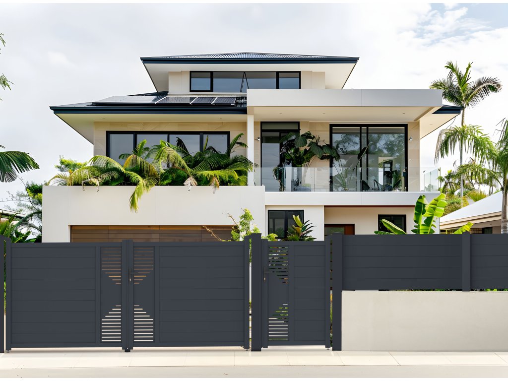 - ozdobný CNC panel dodává vjezdovým vratům atraktivitu