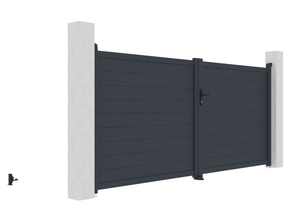 Výplň s horizontálně uloženými lamelami v atraktivním grafitovém provedení kombinuje dostatek soukromí s moderním designem, takže brána s otevíráním dovnitř bude slušet každému typu oplocené stavby.