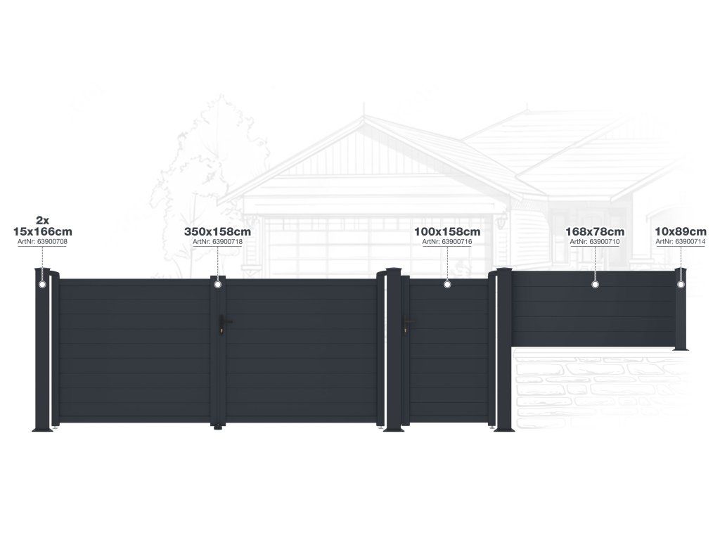 Vjezdová brána je důležitou součástí oplocení. 158 cm vysoká hliníková brána Orlando má díky práškovému nástřiku ještě delší životnost, je odolná, atraktivní a její šířku můžete i přizpůsobit stávajícímu oplocení. Otevírání na kliku a zámek s FAB vložkou, šířka 350 cm umožní hladký průjezd všech vozidel.