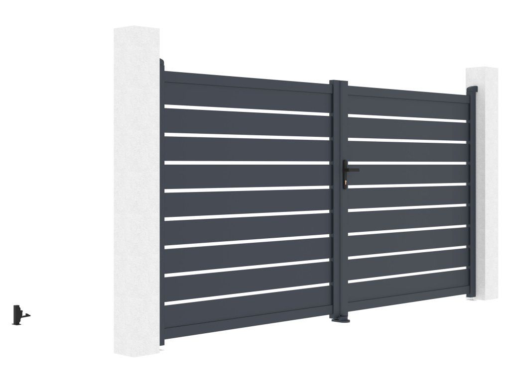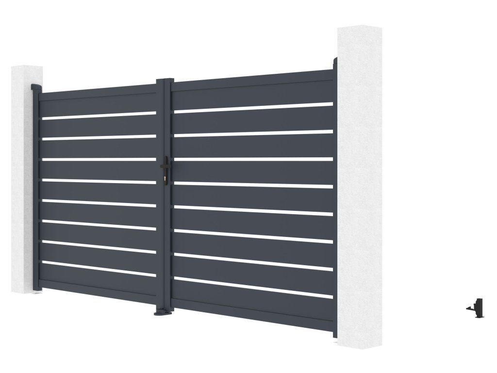 Vjezdovou bránu Reno jsme vyrobili z lehkého, pevného a hlavně bezúdržbového hliníku. Je odolný vůči prasknutí i prohnutí, nezreziví a antracitový odstín, nanesený práškovým nástřikem, dodává vjezdové bráně atraktivitu a stálobarevnost. Zesílený profil dvoukřídlé vjezdové brány Reno vám navíc v budoucnu umožní montáž elektrického otevírání.