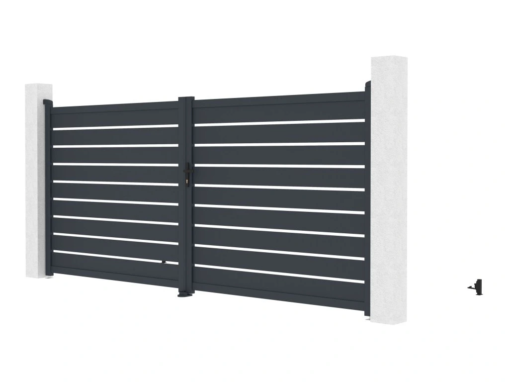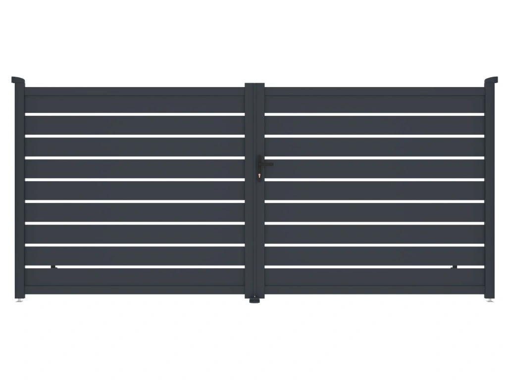 Vjezdovou bránu Reno jsme vyrobili z lehkého, pevného a hlavně bezúdržbového hliníku. Je odolný vůči prasknutí i prohnutí, nezreziví a antracitový odstín, nanesený práškovým nástřikem, dodává vjezdové bráně atraktivitu a stálobarevnost. Zesílený profil dvoukřídlé vjezdové brány Reno vám navíc v budoucnu umožní montáž elektrického otevírání.