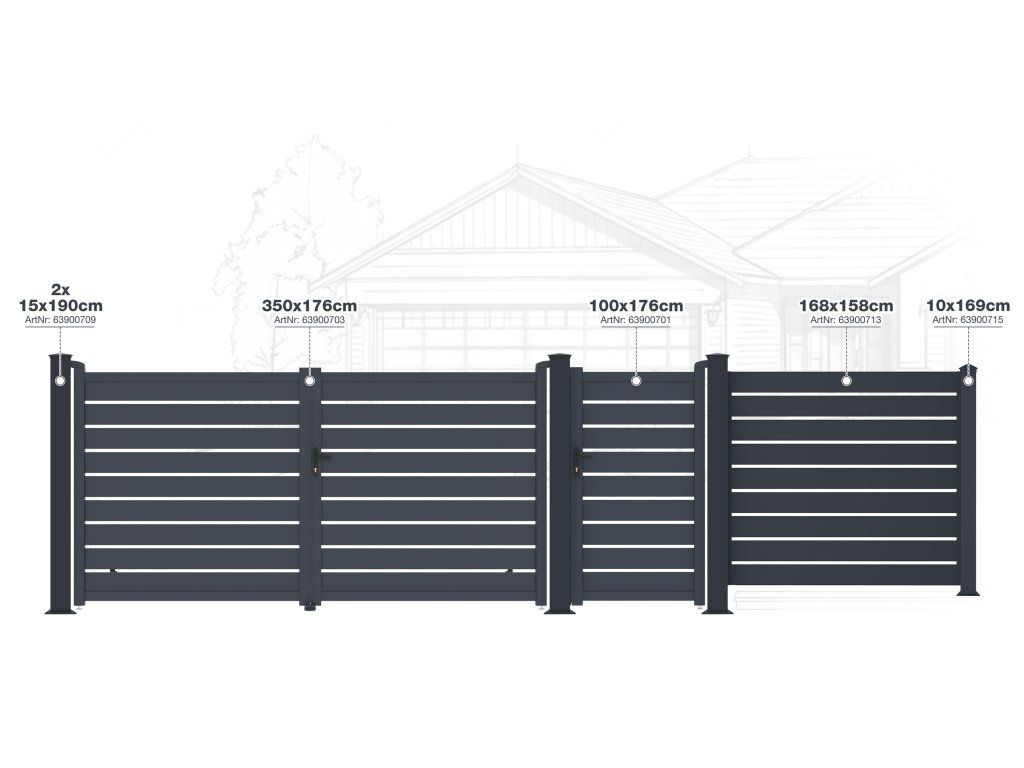 - Moderní hliníkové branky, brány a plotová pole řady G21 Reno kombinují robustnost s lehkostí, což zajišťuje dlouhou životnost a odolnost vůči povětrnostním vlivům.