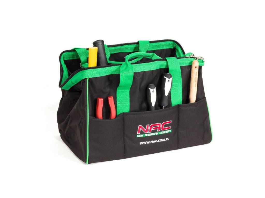 Máte doma elektrické nářadí řady NAC AKUMULTISYSTEM 20V? Pořiďte si pro něj funkční brašnu NAC. Je vyrobená z vodotěsného materiálu. Navíc má rukojeť pokrytou protiskluzovou vrstvou, takže ji pohodlně přenášíte. Zesílené dno a okraje dobře drží tvar. Do postranních kapes si uložíte nejrůznější ruční nářadí.
