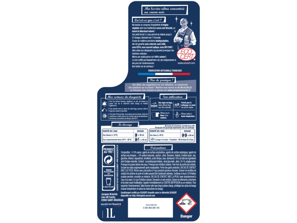 Velmi koncentrovaný, jedno balení je určeno pro 27 pracích cyklů. Účinný již od 30 ° C. Prací prostředek s černým mýdlem můžete použít i na jemné prádlo.Dávkování