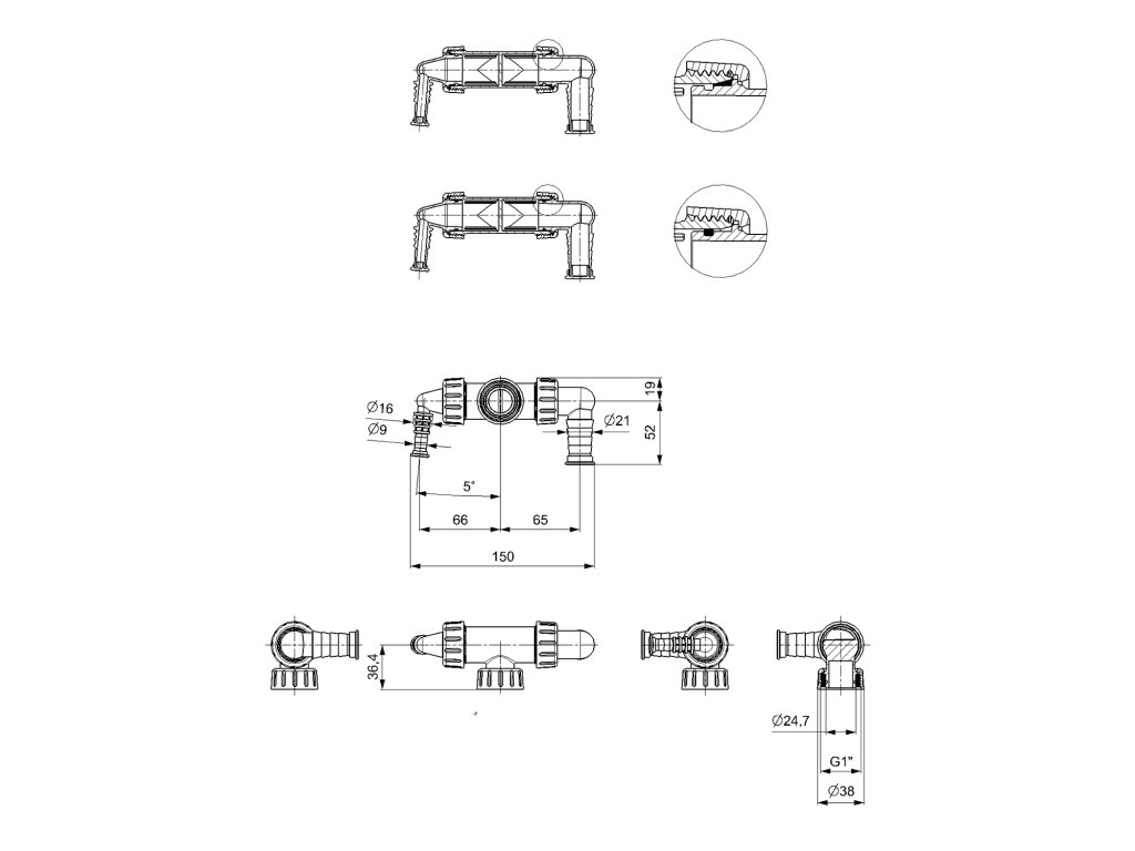 Bruckner Dvojkolínko podomítkového sifonu, pro pračku a sušičku/myčku, bílá 168.132.0