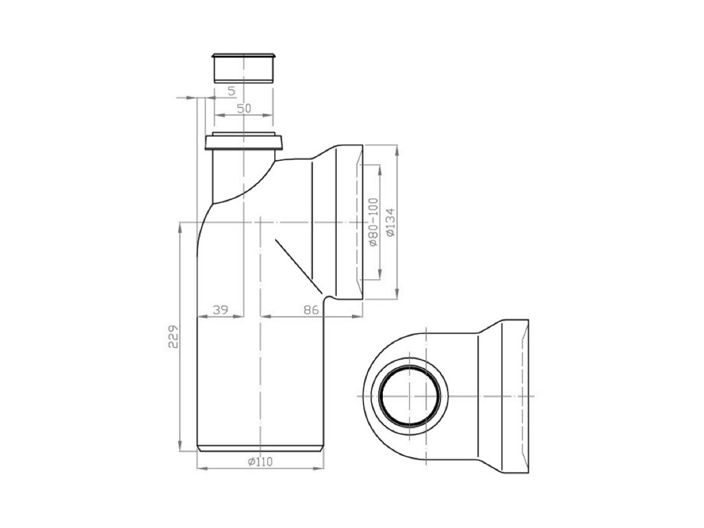 Bruckner Koleno s přípojkou 90 dopojení k WC, 110mm 159.313.0