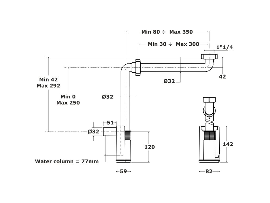Jedná se o systém, kde trubka těsně pod umyvadlem odvede vodu ke zdi a teprve tam ji odvádí svisle dolů. Toto řešení je vhodné například do koupelnového nábytku, kdy sifon nebrání využití police/zásuvky, pro umyvadla s policí nebo k umyvadlům pro tělesně handicapované.