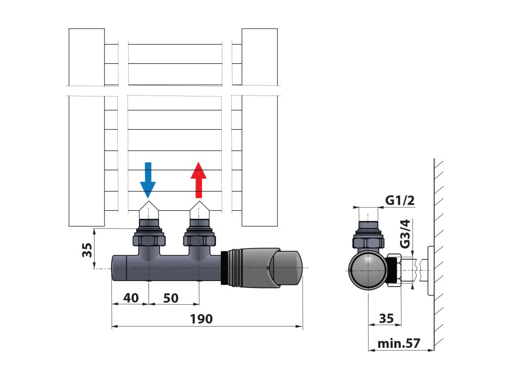 V případě ústředního vytápění je důležitý výběr připojovací sady ventilů. Na výběr je použití ručního ventilu nebo ventilu s termostatickou hlavicí.