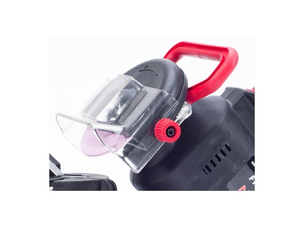 Elektrická bruska je vybavená kvalitním motorem s výkonem 220 W. Maximální rychlost dosahuje hodnoty až 7 500 otáček za minutu. Broušení řetězu je tedy rychlé a přesné.