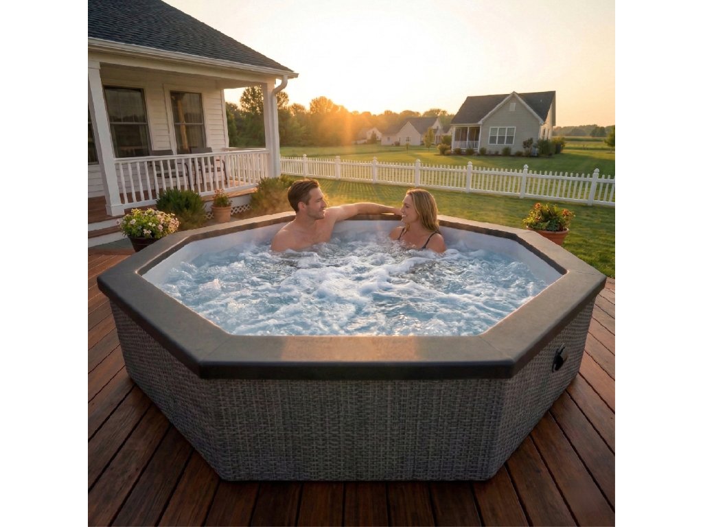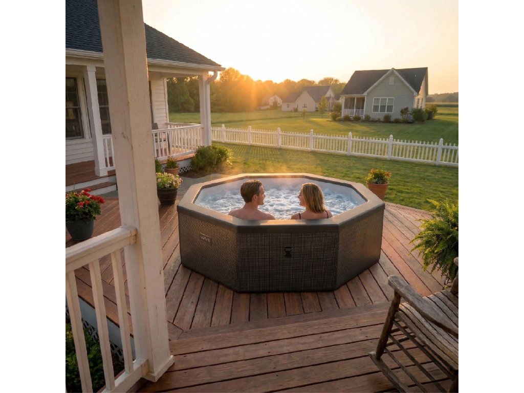 CF Wave COMO 6 CHARCOAL BLACK je moderní nafukovací vířivka s pevnou pěnovou konstrukcí, která přináší dokonalou kombinaci komfortu, úspory energie a designu. Nabízí prostor až pro 6 osob, silný masážní systém a chytré ovládání přes WiFi – ideální řešení pro relaxaci doma i na zahradě. •Pro 4–6 osob – ideální pro rodinu i přátele•Pevná foam konstrukce = stabilita jako pevná vířivka•Až 90 masážních trysek pro intenzivní relaxaci•Úsporný provoz a rychlý ohřev vody až na 40 °C•WiFi ovládání přes mobilní aplikaci•Celoroční použití včetně Freeze Protect ochrany•Moderní design CHARCOAL BLACK