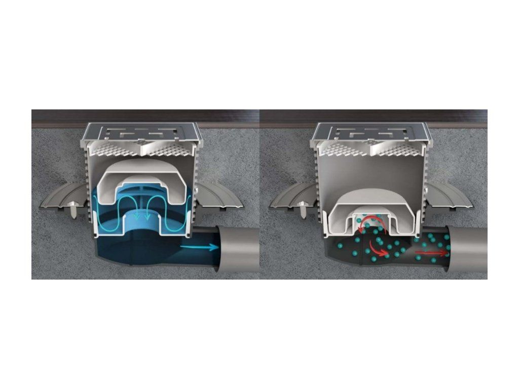 Při poklesu vodní hladiny plovák NEPTUN uzavírá odtok a tím zabraňuje zpětnémupronikání zápach z kanalizačního potrubí