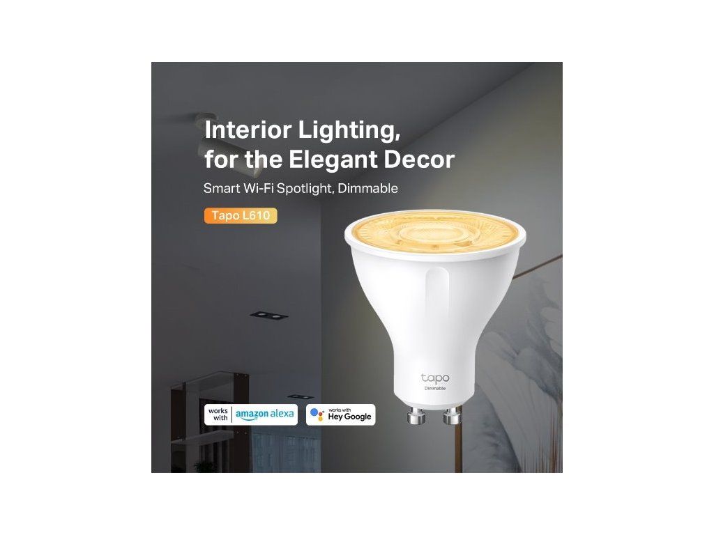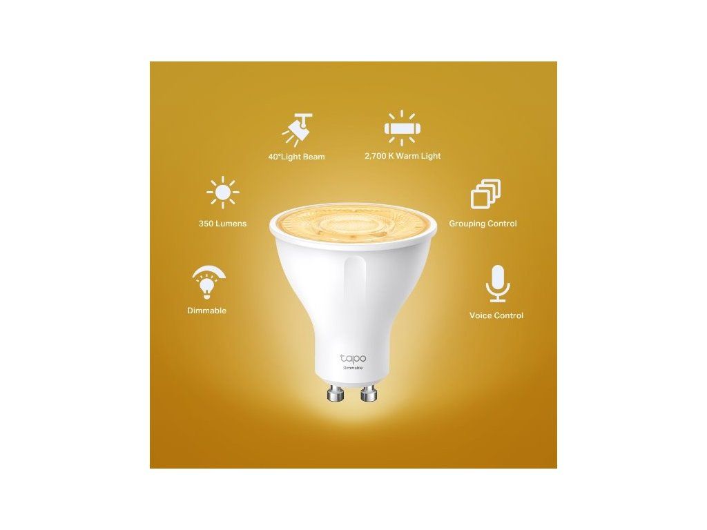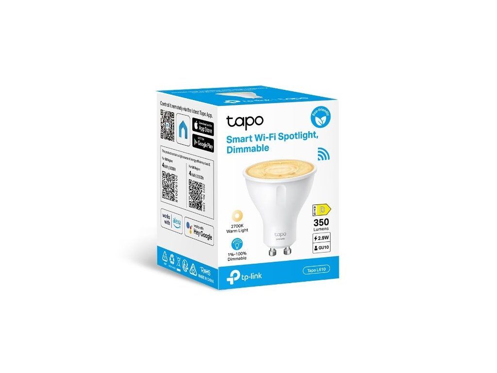 - 1x chytrá žárovka TP-Link Tapo L610 GU10, 2,9W, 230V, přes IP, stmívatelná, 2700K