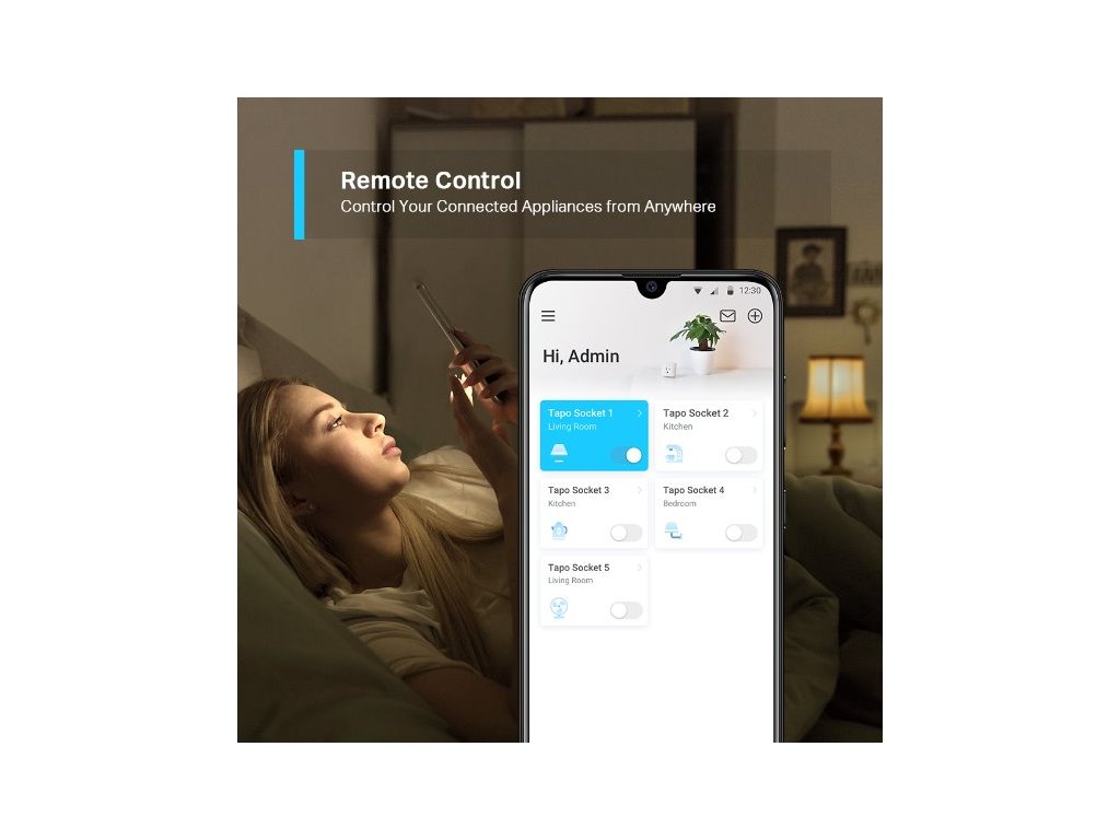 Pokud jste vyrazili do práce a zapomněli doma zapnutý spotřebič nebo třeba rozsvícenou lampu, jednoduše vypnete chytrou zásuvku, v níž je elektronika zapojená. Je jedno, kde se právě nacházíte. Zásuvka je totiž kompatibilní s připojením Wi-Fi (standard IEEE 802.11b/g/n). Díky tomu ji ovládáte i vzdáleně. Stáhněte si aplikaci Tapo a využijte všechny možnosti, které vám poskytuje, včetně hlasového ovládání.