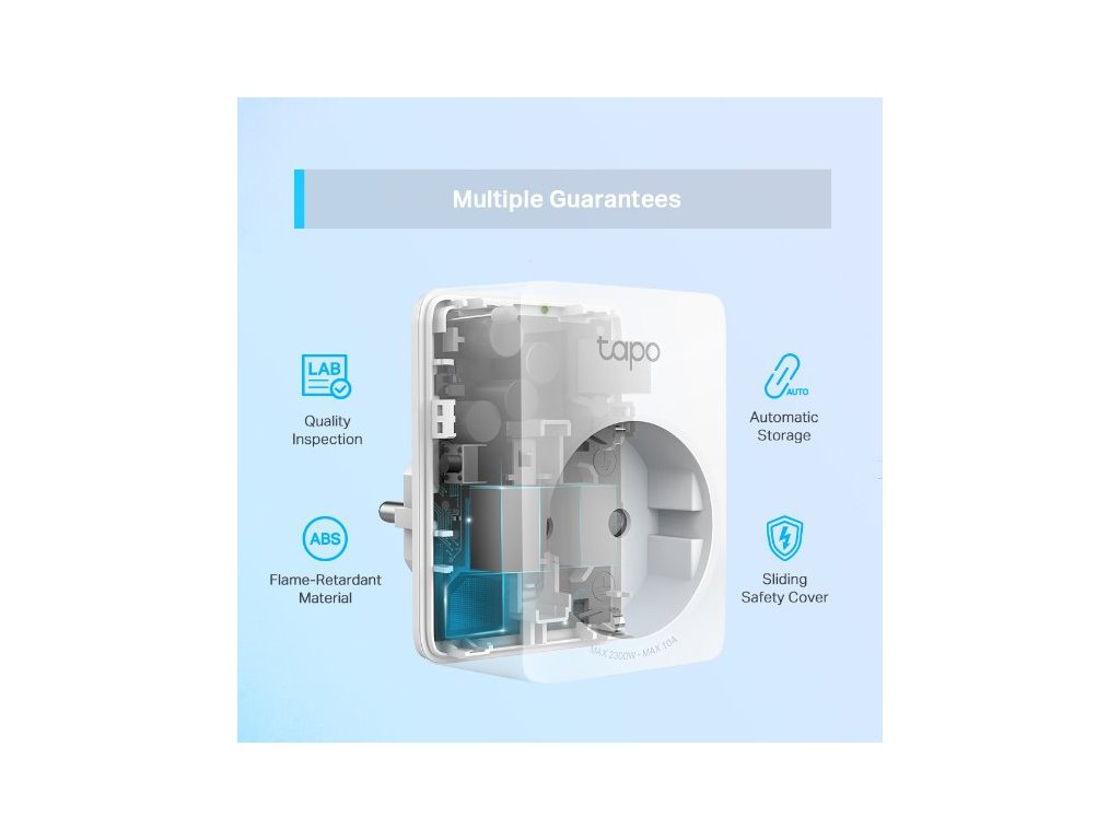 TP-Link dbá na vaši bezpečnost. Chytrá zásuvka se vyrábí z materiálu zpomalující hoření, který sníží riziko vzniku požáru. Zároveň na ní najdete posuvný bezpečnostní kryt. Ten vás brání před úrazem elektrickým proudem.