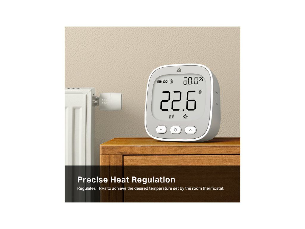 Chytrý termostat TP-Link KE110 Smart zajišťuje přesnou regulaci teploty podle vašich potřeb. Stačí ho propojit s kompatibilními termostatickými hlavicemi Kasa. Pokud máte chytrých hlavic více, přizpůsobí teplotu v jednotlivých místnostech podle nastavené hodnoty. Ovládáte je odkudkoliv a kdykoliv buď samostatně, nebo všechny najednou pomocí praktické aplikace. Kromě toho termostat podporuje hlasové ovládání díky podpoře Google Assistanta a Alexy.
