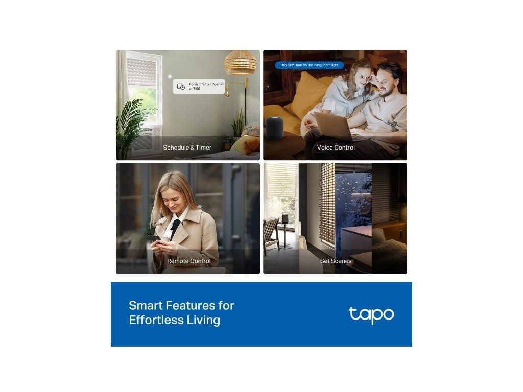 Chytrý spínací modul TP-Link Tapo S112 vám umožní nastavit běžná světla, zásuvky nebo rolety na dálku, automaticky nebo pomocí hlasu. Díky dvěma samostatným relé výstupům ovládá dvě různá zařízení současně, například stropní světlo a žaluzie. Díky kompaktním rozměrům ho snadno umístíte i do těsné instalační krabičky, za stávající vypínač nebo zásuvku.