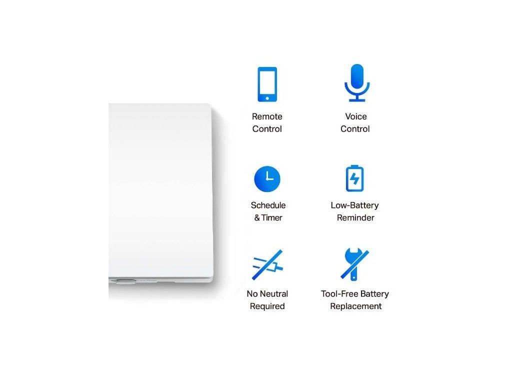 Vypínač napájí baterie, kterou jednoduše vyměníte. Nepotřebujete k tomu ani žádný nástroj. Tapo S210 nevyžaduje nulový vodič. Snadno ho tedy zapojíte.