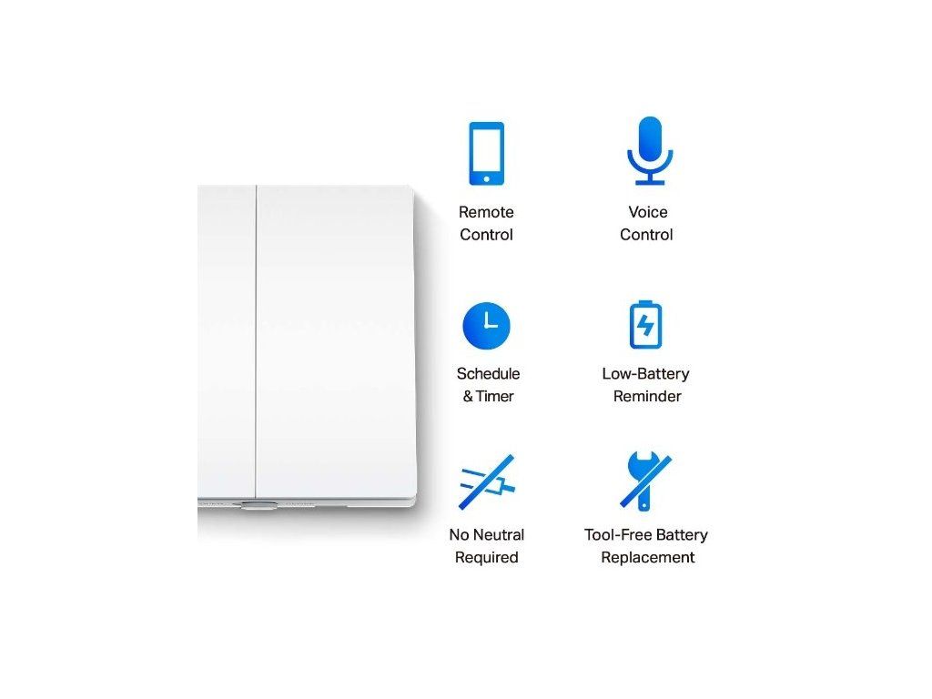 Vypínač napájí baterie, kterou jednoduše vyměníte. Nepotřebujete k tomu ani žádný nástroj. Tapo S220 nevyžaduje nulový vodič. Snadno ho tedy zapojíte.