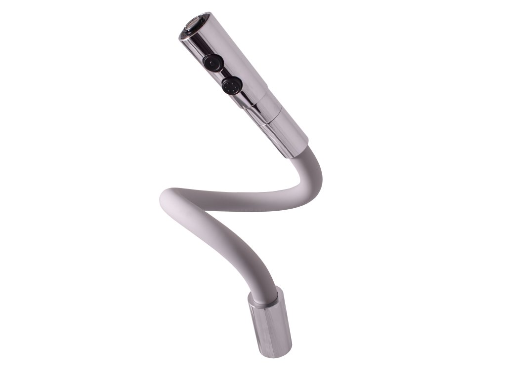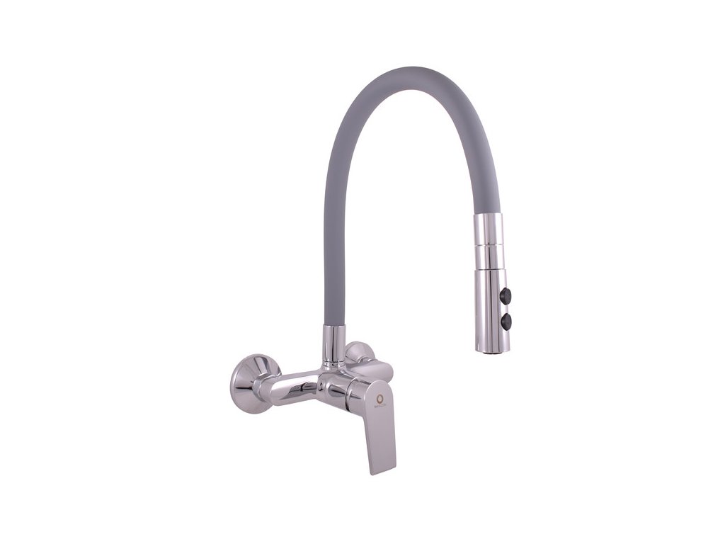 Vodovodní baterie dřezová nástěnná s flexibilním otočným ramínkem se sprchou.