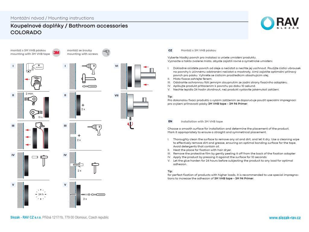 - DUÁLNÍ MONTÁŽ - kotvící sada v balení obsahuje díly pro klasické vrtání i možnost pevného lepení pomocí technologie 3M.