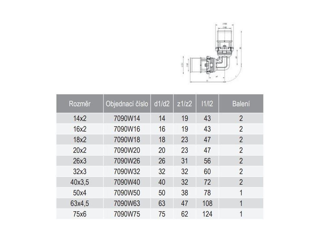 COMAP MULTISKIN 7090W koleno 90°, 16x2mm, lisovací, voda, mosaz, 7090W16