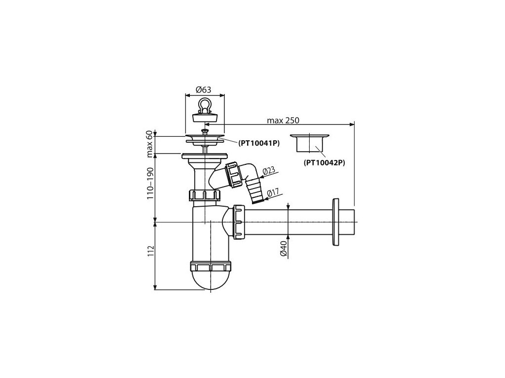 CONCEPT umyvadlový sifon 40mm, s výpustí, s nerezovou mřížkou, přípojkou, PP, bílá/nerez, PT10041P