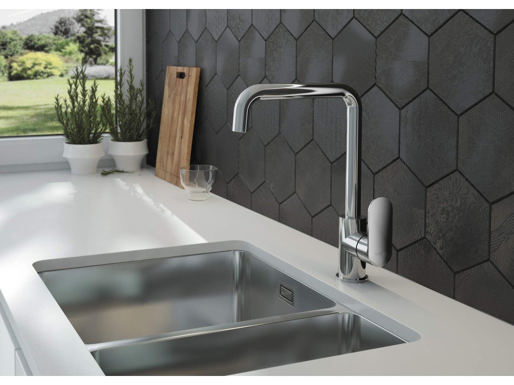 Funkční kuchyňská baterie byla navržena s ohledem na vysokou použitelnost a estetický vzhled. Díky elegantnímu designu se hodí do moderních, ale i skandinávských nebo tradičnějších interiérů. Dřezová baterie má perlátor, který zkracuje životnost vody, což je velmi důležité při ručním mytí nádobí. Kromě toho je provzdušněný proud měkčí. Jedná se o model s obdélníkovou výpustí. Série baterií Alpinia dokonale odpovídá současným designovým trendům. Jemné linie a zaoblené tělo přitahují pozornost. Jejich jednoduchá, uhlazená forma osloví příznivce moderních interiérů, kteří si cení funkčnosti a propracovaných detailů. Řada baterií této série zahrnuje umyvadlové baterie - nízké a vysoké, vanové baterie, sprchové baterie, bidetové baterie a kuchyňský model. Kolekci doplňuje obdobně stylizovaná dešťová sprcha. Baterie se dodávají ve 3 módních povrchových úpravách: lesklý chrom a zlatá a matná nero. Alpinia však nejsou jen baterie. Kolekce zahrnuje také sprchové kouty a vany a vanové zástěny. Kabiny a zástěny jsou vyrobeny z tvrzeného průhledného skla s povrchovou úpravou Active Cover. Celá kolekce je díky svým malým rozměrům ideálním řešením pro malé koupelny.