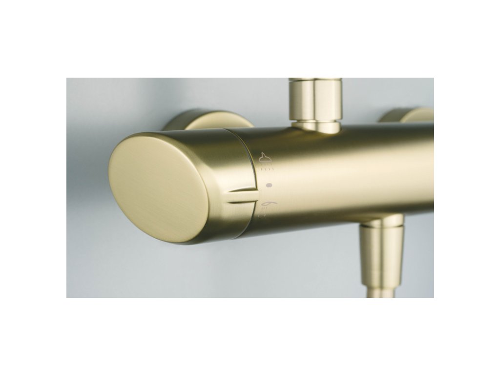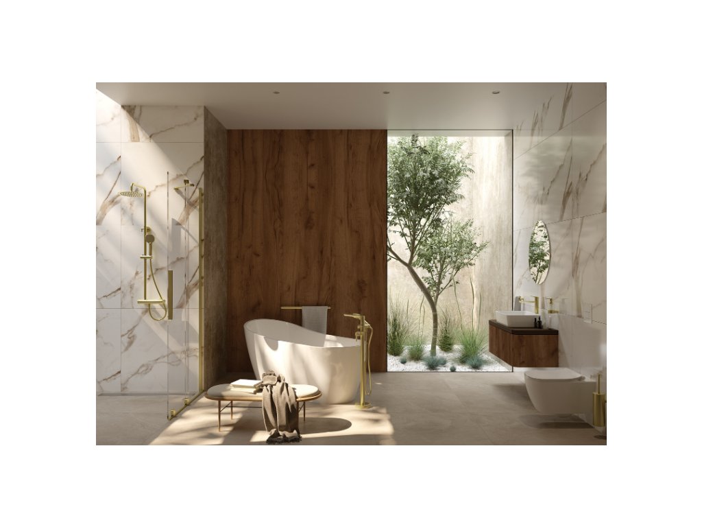 Série Arnika kombinuje funkčnost s jemnými, přirozeně se vyskytujícími tvary. Je inspirována dánským stylem hygge, kde převládá harmonie a minimalismus. Dešťová sprcha Arnika v nápadném zlatém provedení se skládá z baterie s praktickým knoflíkem, výškově nastavitelné tyče, sprchové hlavice a hadice se sprchovou rukojetí. Sprchová hlavice je vyrobena z mosazi a má průměr 25 cm, což zaručuje příjemné a pohodlné sprchování. Uživatel si navíc může díky nastavitelné výšce a úhlu nastavit polohu rukojeti podle svých potřeb.