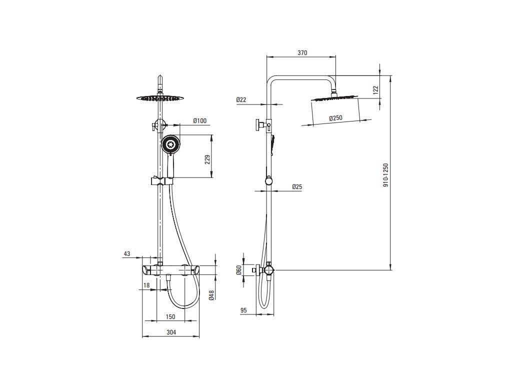 Dešťová sprcha má nastavitelnou výšku horní sprchové hlavice tak, aby vyhovovala výšce uživatele. Tento rozsah umožňuje optimální nastavení výšky dešťové sprchy pro všechny členy domácnosti.