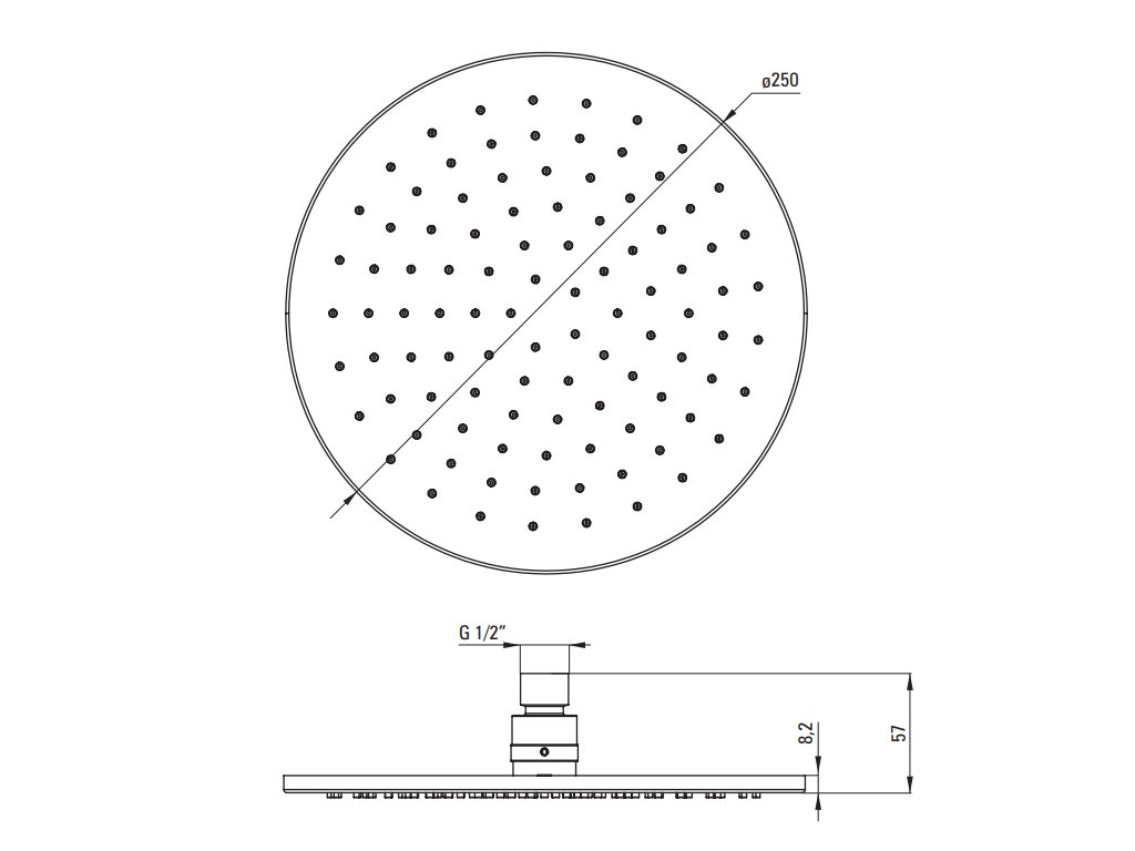 - průměr horní sprchy - 25 cm