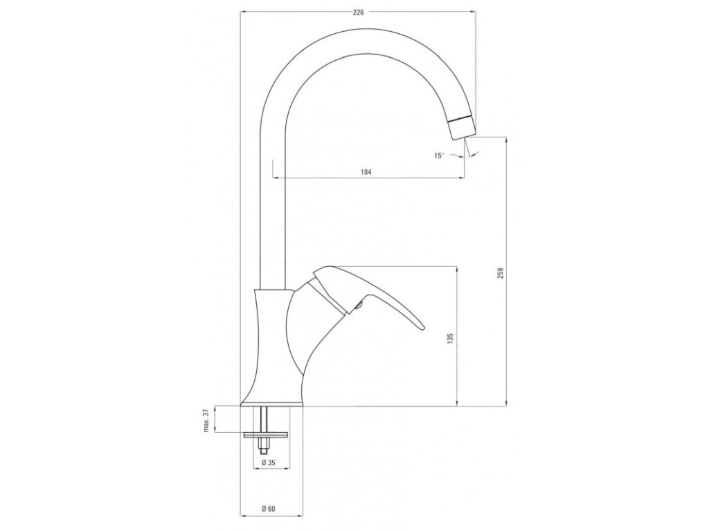- provedení - kuchyňská dřezová stojánková vodovodní baterie s U ramínkem
