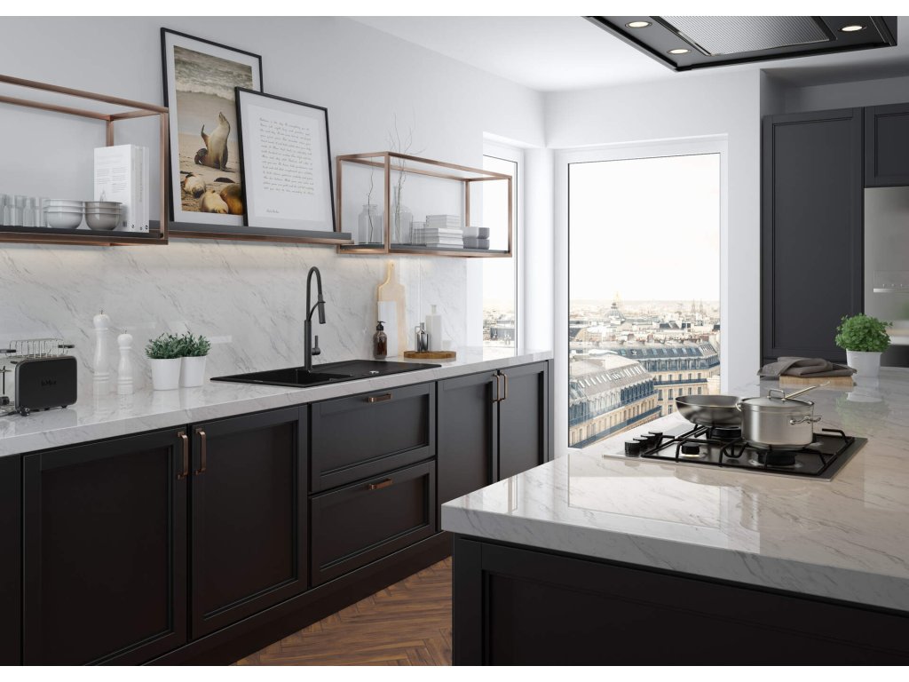 Granitový dřez Eridan je vyroben z nejkvalitnějšího přírodního žulového kompozitu. Vyznačuje se odolností proti nárazu, vysokým teplotám a rychlým změnám teploty v souladu s evropskou normou EN 13310. Estetický povrch se nebarví a neztrácí lesk. Dokonale se kombinuje s dřevěnými a kamennými pracovními deskami. Praktický dřez s jednou mísou a odkapávačem je ideálním řešením pro malé kuchyně a studia s přístavbou. Zároveň slouží jako odkapávač; profilovaný povrch účinně odvádí vodu z nádobí nebo umytých potravin.
