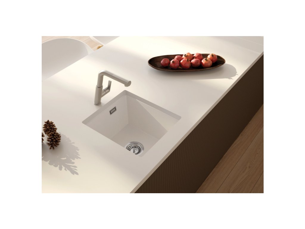 - Granitový dřez určený k instalaci na desku nebo pod desku
