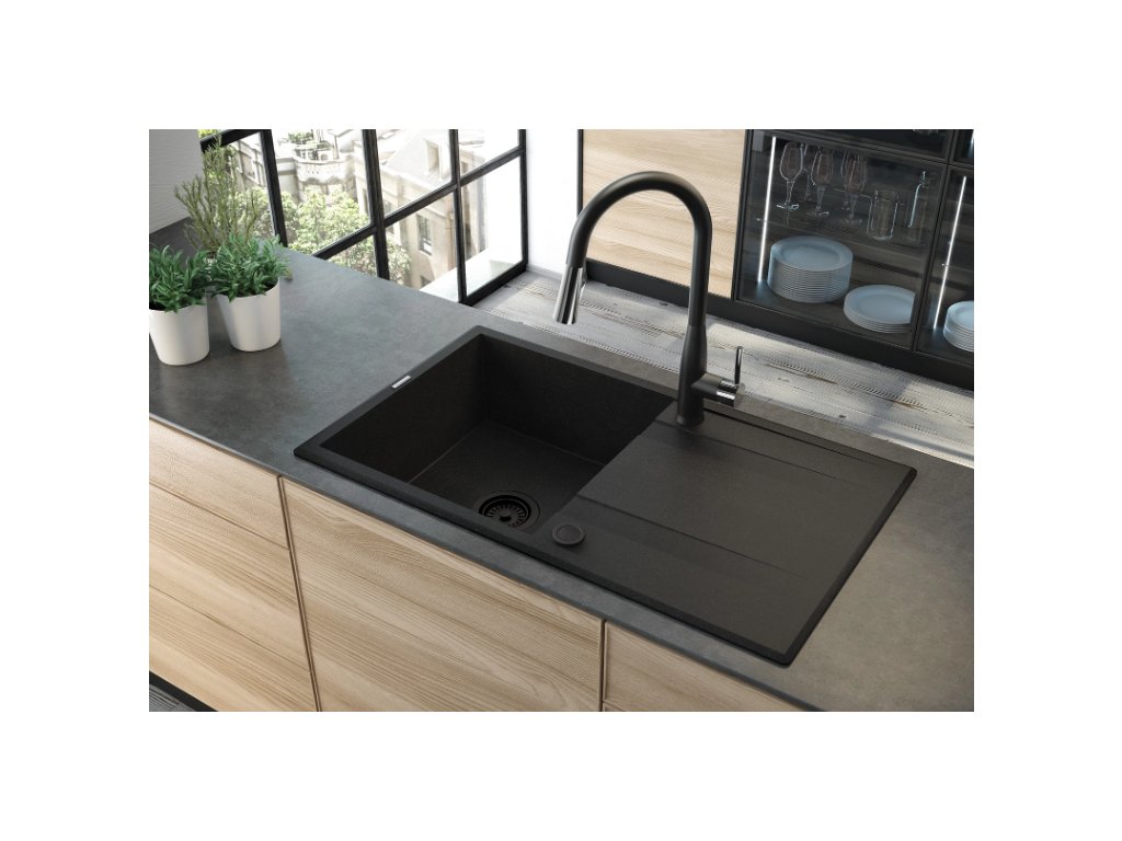 - Granitový dřez určený k instalaci na desku