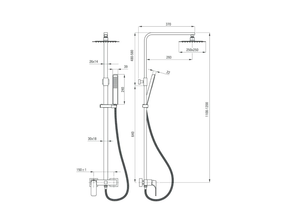 - nastavitelná výška sprchové tyče - 110 až 120 cm