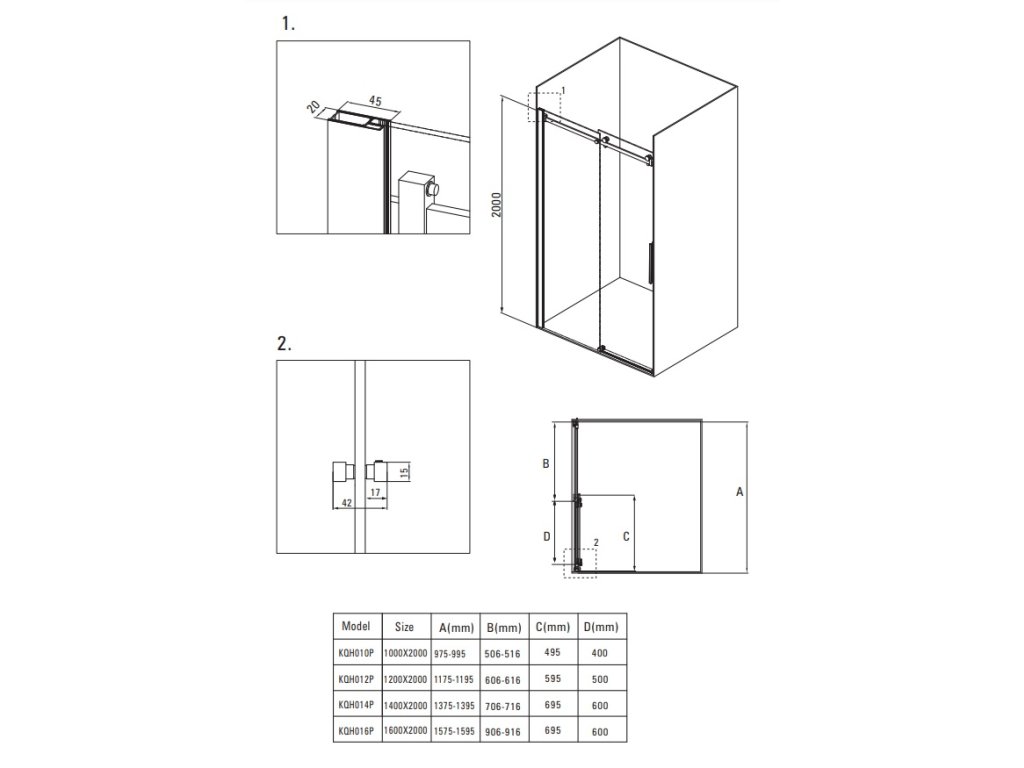 Kombinací těchto sprchových dveří v rozměru 100 cm a pevného bočního dílu (80 cm nebo 90 cm) si lze vytvořit sprchový kout o rozměru 100x80 cm nebo 100x90 cm.