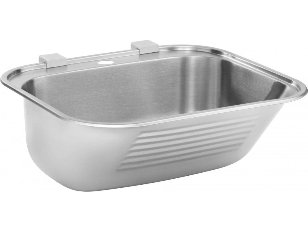 Technický dřez Nerez 550 lze namontovat na zeď, tudíž není potřeba pracovní deska. Ve dřezu je předvrtán otvor na baterii. Do dřezu lze vyvrtat další otvory např. na dávkovač saponátu/ jaru.