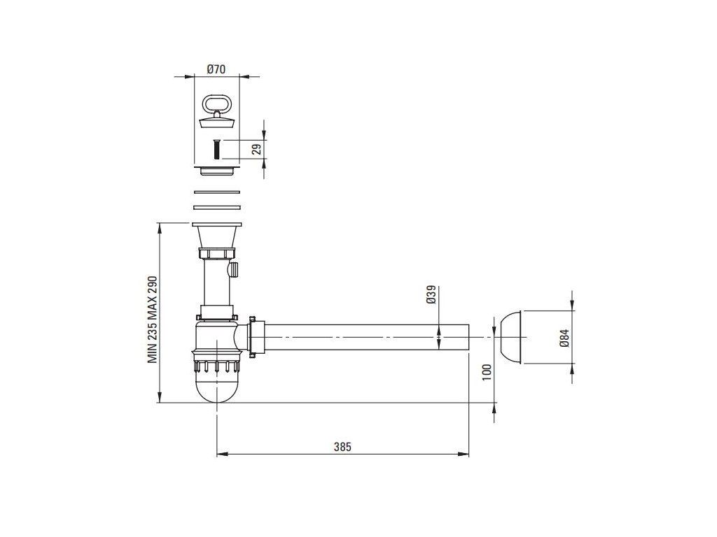 - technický dřez z nerezové oceli o tloušťce 0,8 mm