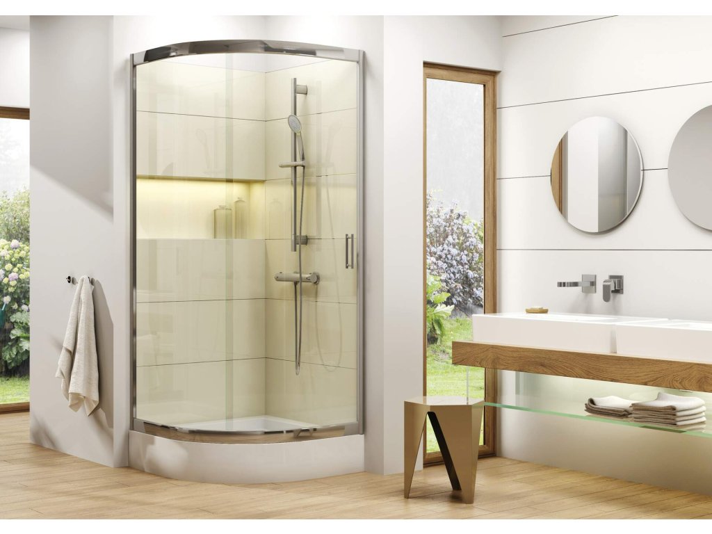 - praktická čtvrtkruhová sprchová vanička s protiskluzovým povrchem