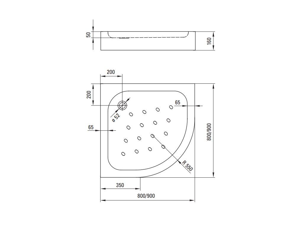 Deante Standard-NC čtvrtkruhová sprchová vanička Rozměr vaničky: 90x90cm, KTA_053B