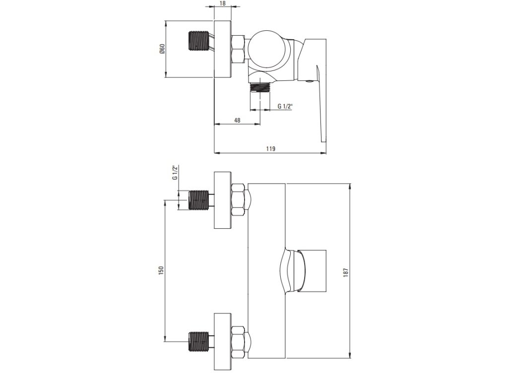 Sprchová nástěnná baterie Tubo je vyrobena z kvalitní 100% mosazi, která se vyznačuje svou