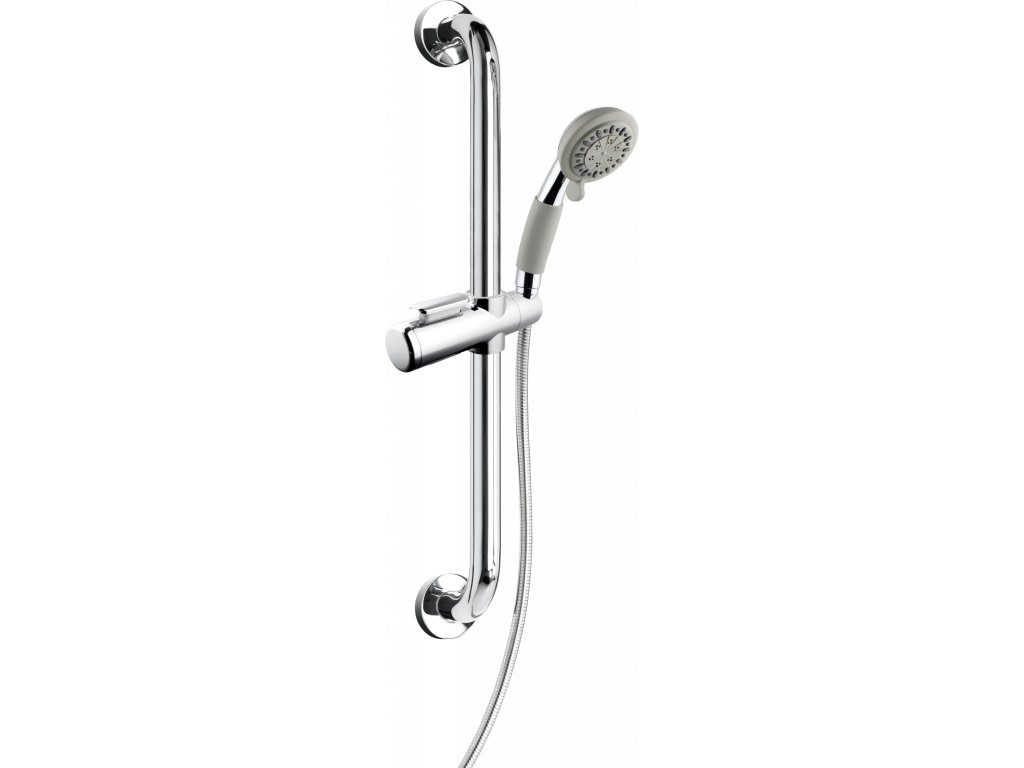 - prakticky řešený sprchový set s madlem o které je možné se opřít, přitáhnout, zároveň dobře řešený úchyt hlavice, který neklouže v ruce