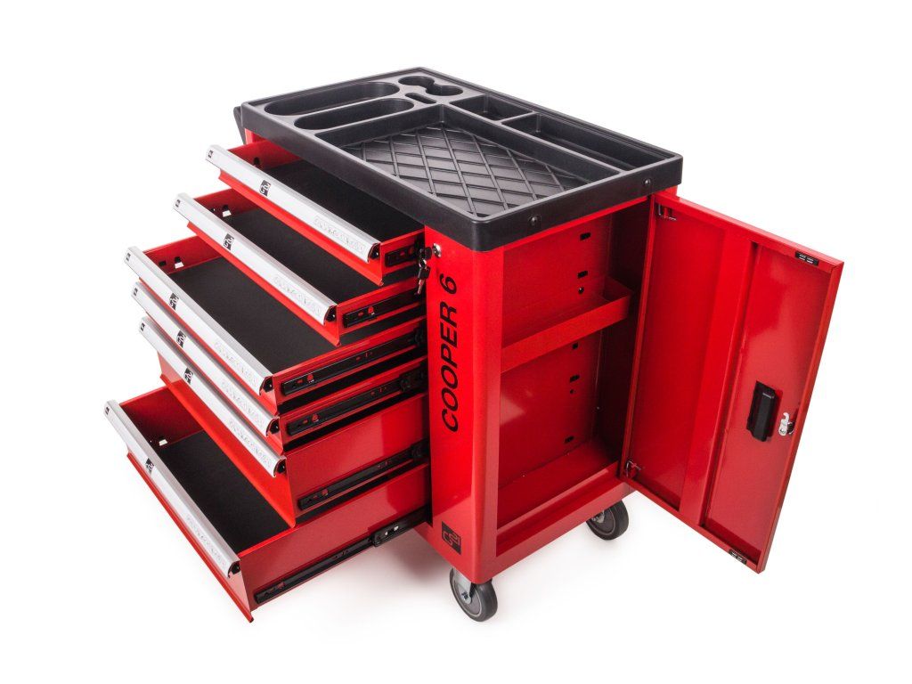 Dílenský vozík G21 Cooper 6 jsme zkonstruovali tak, aby pojal co největší množství dílenského nářadí a příslušenství. V šesti vnitřních zásuvkách a boční skříňce najdete místo pro uložení šroubováků i kleští, vrtaček nebo aku nářadí i příslušenství a dalšího nezbytného dílenského vybavení.
